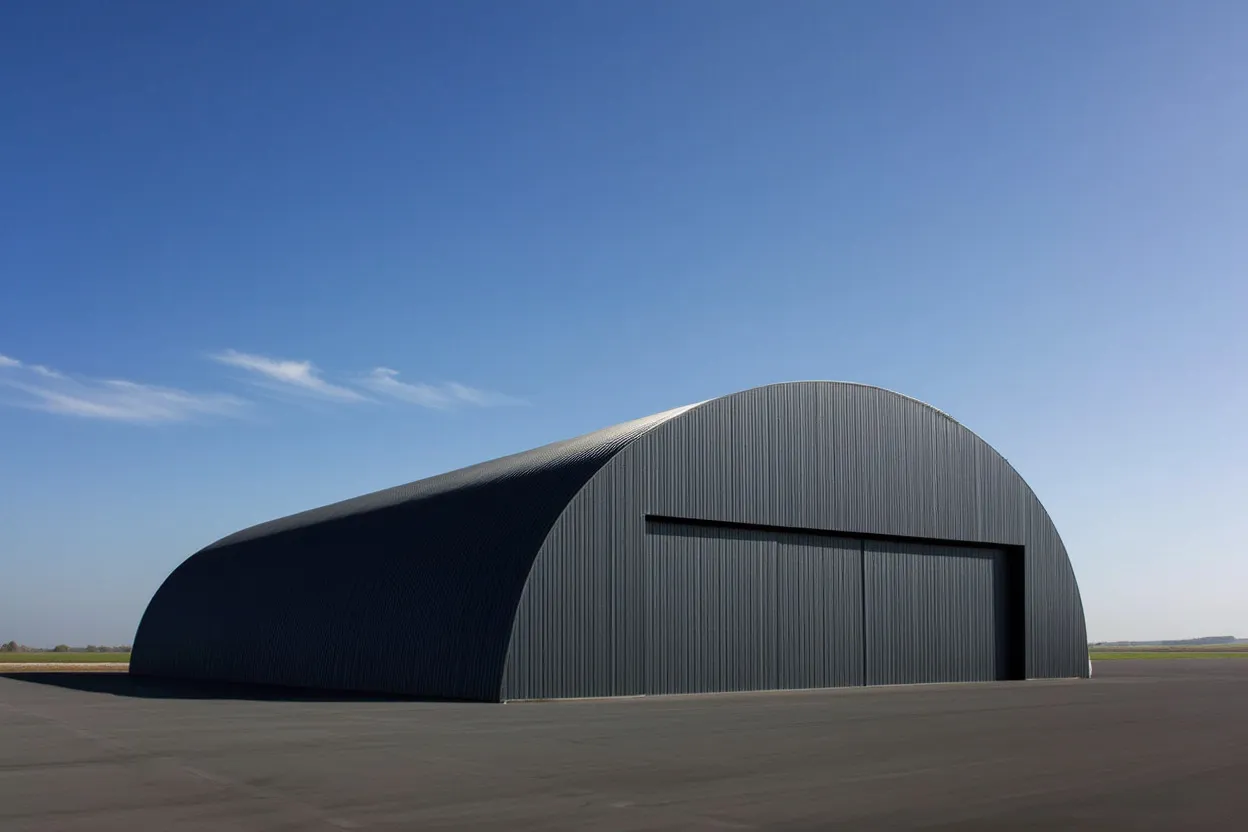 Конструктивные решения для ангаров включают использование металлоконструкций, которые обеспечивают долговечность и прочность здания. Дизайн может варьироваться в зависимости от назначения ангара: от простых прямоугольных сооружений до более сложных конструкций с разными уровнями и дополнительными помещениями.